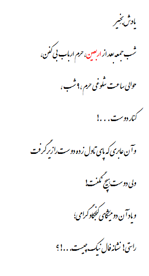 پَ نَ : هـَر جـایِ حـرَمَت کـه فـُرود آیـَم ، بـرایـَم راهِ ضَـریحـَت از صَحـنِ آزادی مـی گـذرد .(: